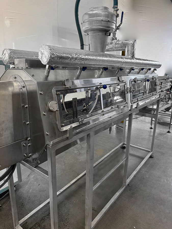 D66 çikolata dolum hattı, özellikle gıda sektöründe faaliyet gösteren işletmeler için yüksek hijyen standartlarına uygun, hızlı ve verimli bir üretim süreci sunar. Hat üzerinde kavanoz temizleme, sıvı çikolata dolumu, kapak kapatma, etiket giydirme ve buhar tüneli işlemleri tek bir akış içinde gerçekleşir.