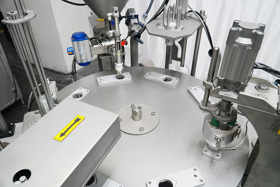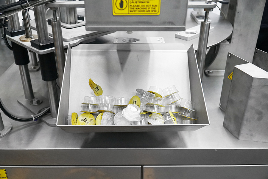 Makinemiz, tek nozullu tasarımı sayesinde dolumda yüksek doğruluk sunar. Besleme istasyonunda kaplar otomatik olarak alınır ve dolum istasyonuna yönlendirilir. Dolum sırasında bal, reçel, marmelat, çikolata, süt, şeker, tuz, baharatlar ve toz ürünler özenle kaplara doldurulur. Dolum tamamlandıktan sonra kapların üzeri alüminyum folyo ile kaplanır ve yapıştırma işlemi ile sızdırmaz hale getirilir. Böylece porsiyonluk ürünler paketlemeye ve dağıtıma hazır şekilde çıkar.